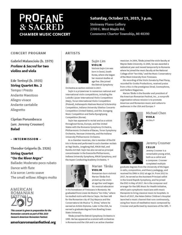 American Romanian Festival 2019 Program Sheets Saturday, October 19, 2019, Program Sheet Saturday, November 9, 2019, Program Sheet